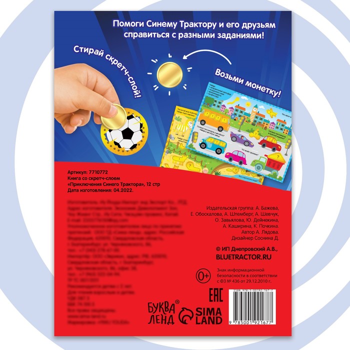 Книга со скретч-слоем «Приключения Синего Трактора», А5, 12 стр., Синий трактор — Характеристики