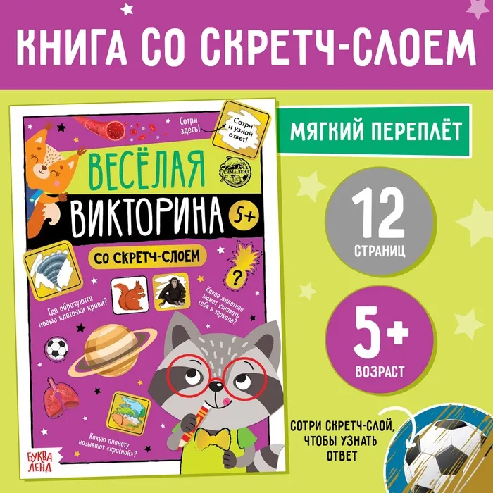 Книга со скретч-слоем «Весёлая викторина», 5+, 12 стр. — Характеристики