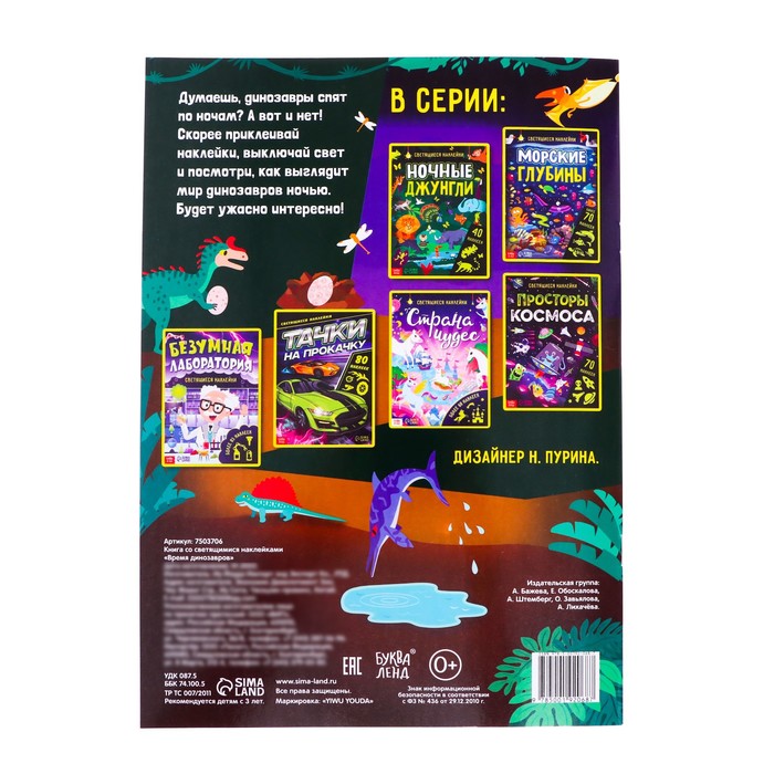 Книга со светящимися наклейками «Время динозавров», 40 наклеек, 4 стр. — Характеристики