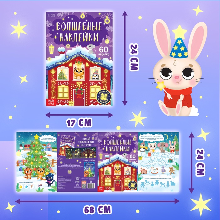 Книга «Светящиеся наклейки. Новогоднее чудо», 60 стикеров — Характеристики