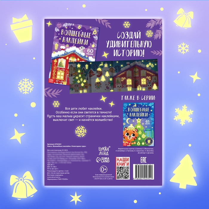 Книга «Светящиеся наклейки. Новогоднее чудо» — это увлекательный набор для детей от 3 лет, включающий 65 наклеек, которые светятся в темноте. Малыш сможет украсить ими любую поверхность, а затем, выключив свет, насладиться волшебным эффектом.