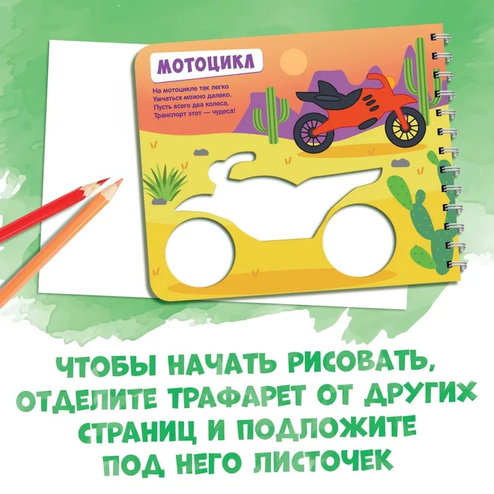 Чтобы начать рисовать, отделите трафарет от других страниц и подложите под него лист бумаги.