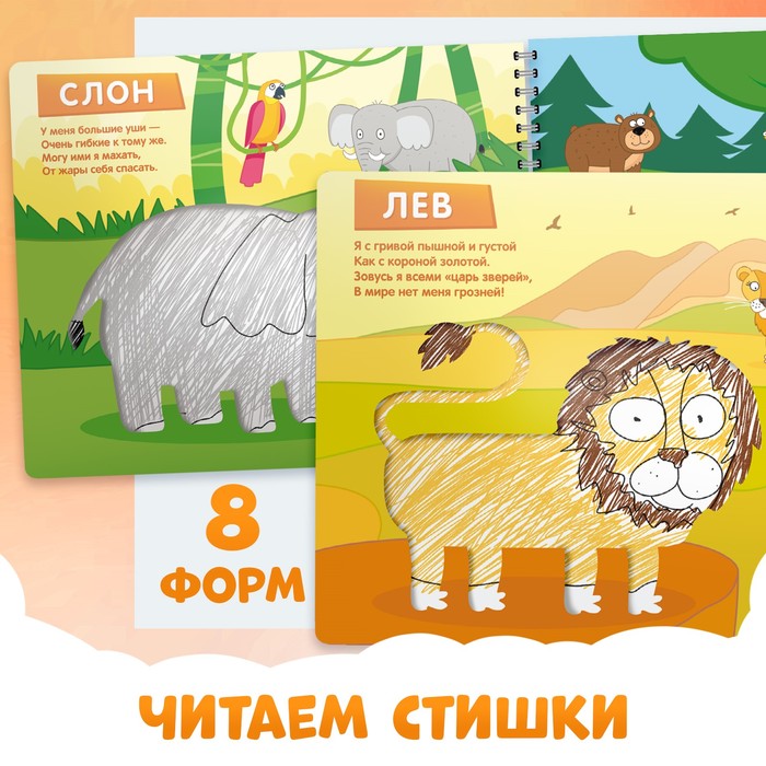 Книга «Трафареты. Такие разные животные», Синий трактор, рисование, трафарет в листе книжки — 8 шт., 3+ — Характеристики