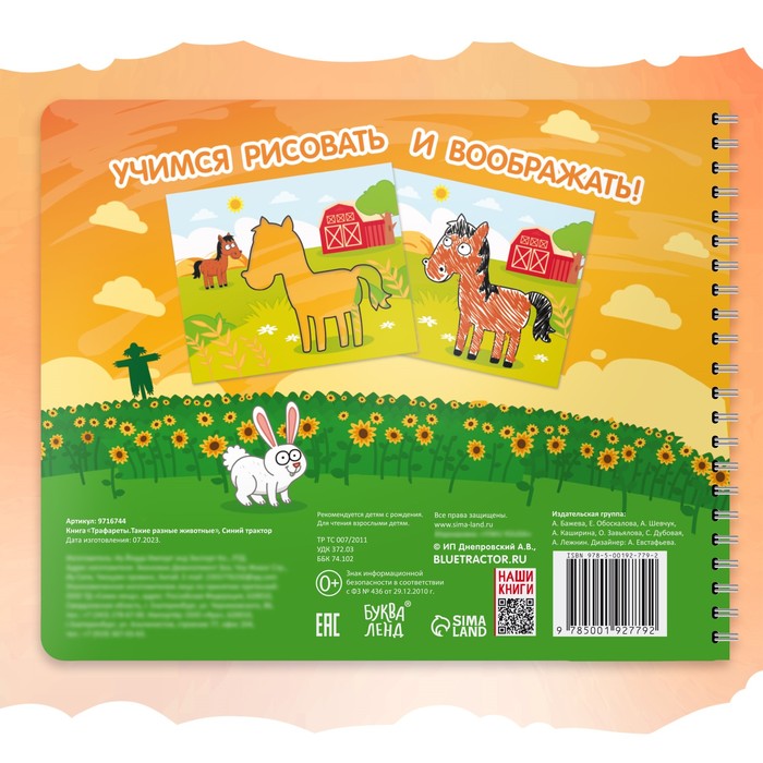 Книга-трафареты «Такие разные животные» с персонажем по имени Синий трактор станет отличным выбором для детей от 3 лет. Книга увлекает ребёнка и способствует развитию важных навыков.