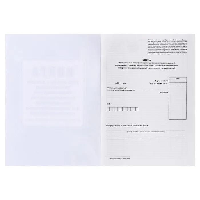 Книга учета доходов расходов ИП, применяющих систему налогообложения для сельскохозяственного товаропроизводства, А4 24 листа