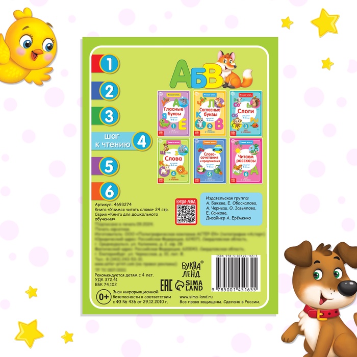 Книга «Учимся читать слова» 24 стр. — Характеристики