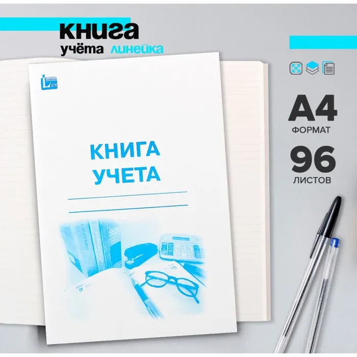 Книга учёта А4 96 листов, в линейку, обложка картон, блок офсет — Характеристики
