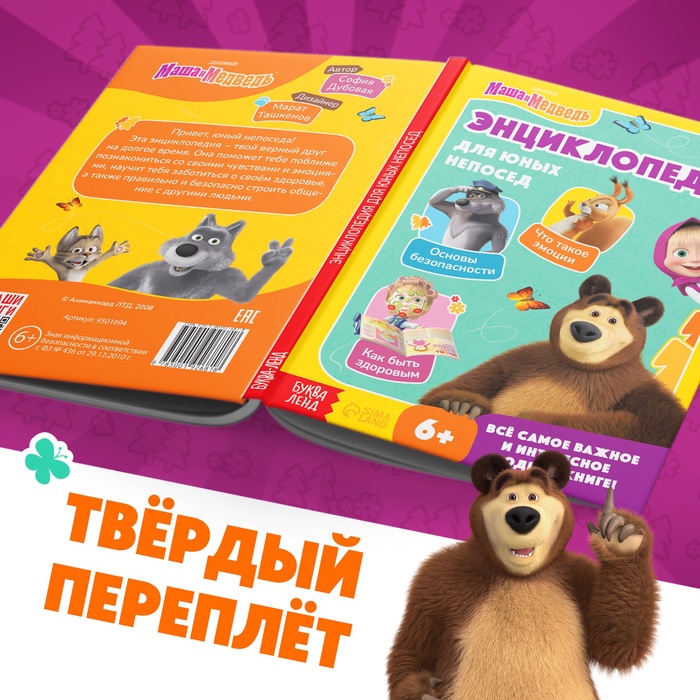 Книга в твёрдом переплёте «Энциклопедия для юных непосед», 48 стр., Маша и Медведь — Характеристики