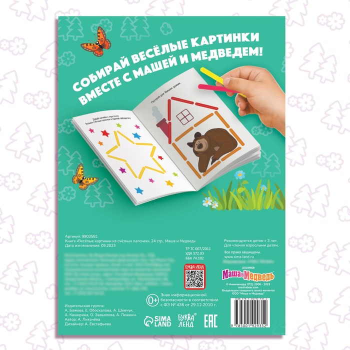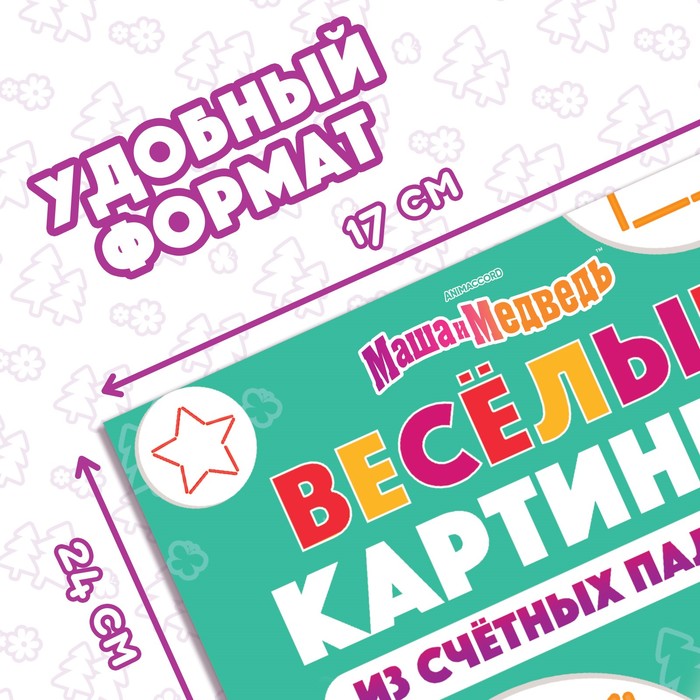 Книга «Весёлые картинки из счётных палочек», 24 стр., 100 палочек, Маша и Медведь — Характеристики
