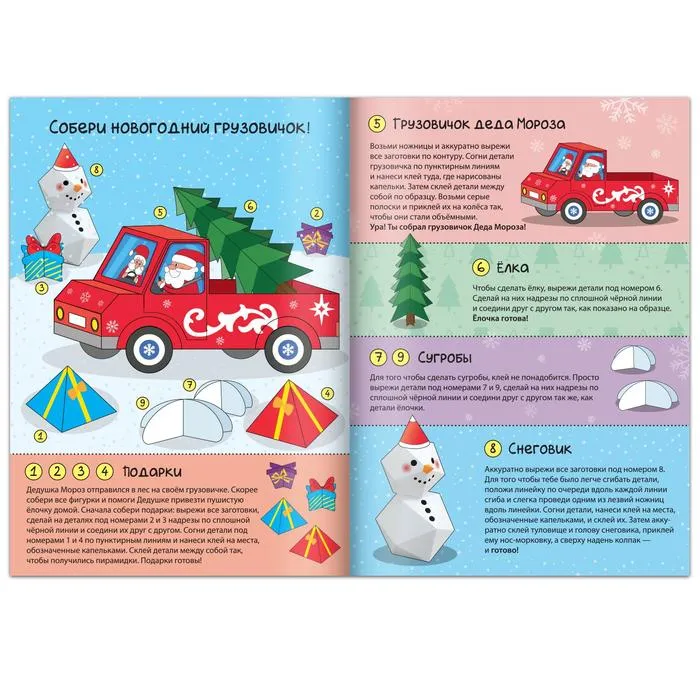 Книга-вырезалка — это готовые идеи новогодних поделок родным, друзьям, украшения интерьера дома и в детском саду. Чтобы изготовить праздничный декор или фигурку, малышу понадобятся ножницы, клей и немного вашей помощи.