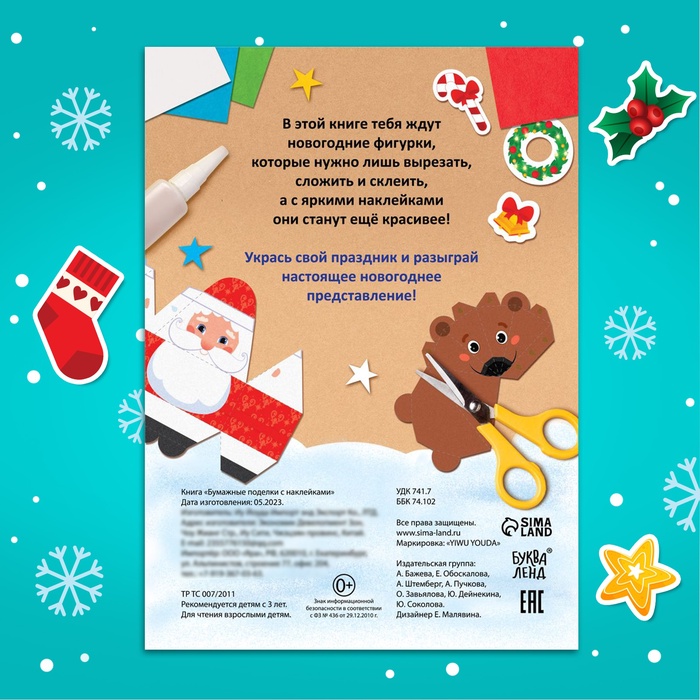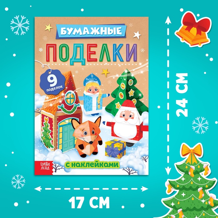 Книга - вырезалка с наклейками «Бумажные поделки», 9 поделок — Характеристики