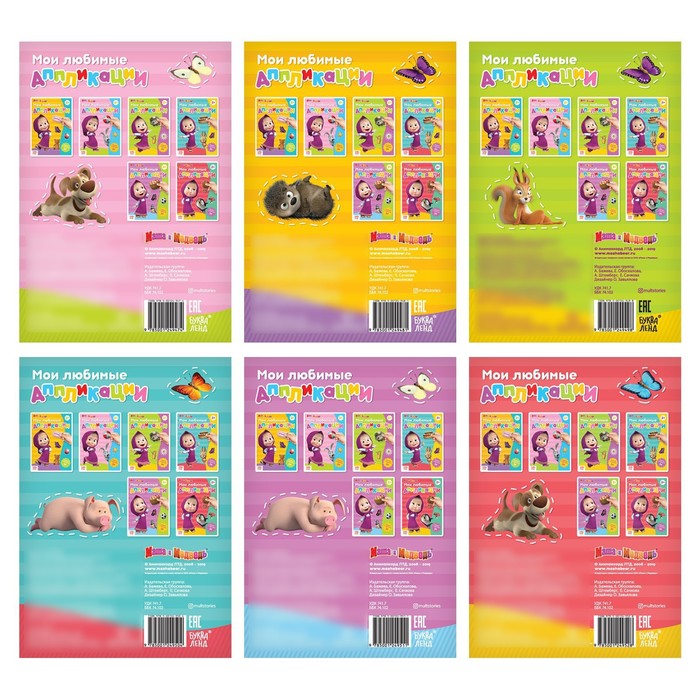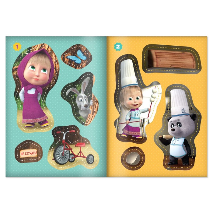 Книжки содержат крупные детали, которые удобно использовать в работе. Ребёнок с интересом изготовит все поделки, ведь внутри находятся изображения с героями любимого мультфильма «Маша и Медведь».