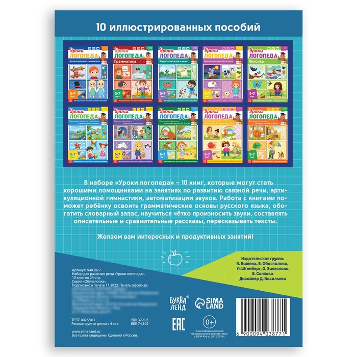 Книги для развития речи «Уроки логопеда», набор 10 шт. по 24 стр., 5-7 лет — Характеристики