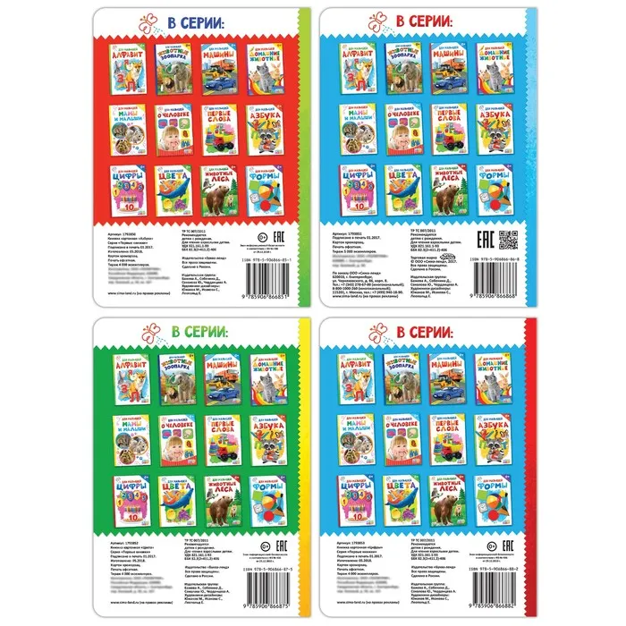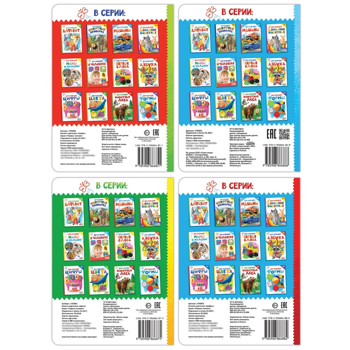 Главное достоинство серии — удобный формат и яркие реалистичные картинки, формирующие правильное представление у ребёнка о мире. Изображения сопровождаются вопросами, интересными фактами и весёлыми рифмами. Учиться с этими книгами — одно удовольствие!
