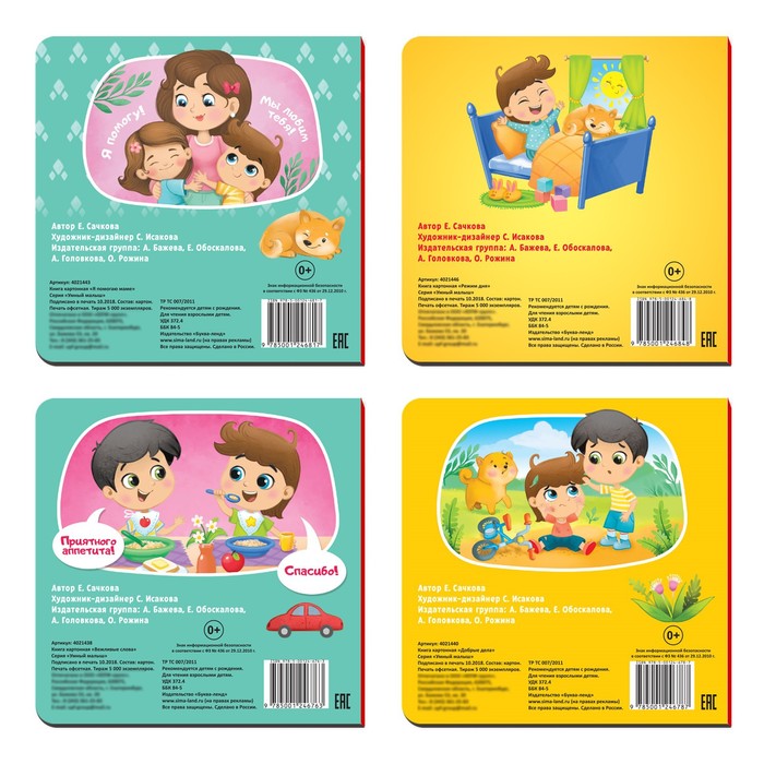 Набор картонных книг «Этикет для малышей» включает 4 красочные книги по 10 страниц каждая, которые познакомят малыша с основами этикета и правилами поведения. Эти издания формата квадрат с твёрдым переплётом станут идеальным выбором для детей с первых месяцев жизни.