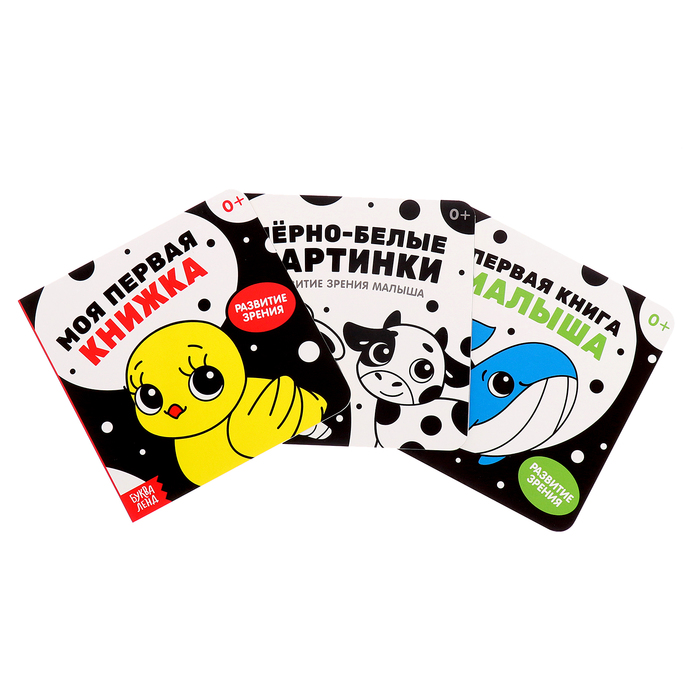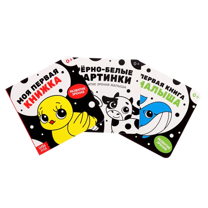 Набор книг «Контрастные и черно-белые картинки для новорожденных» — отличный инструмент для развития малышей с рождения, который познакомит их с окружающим миром.