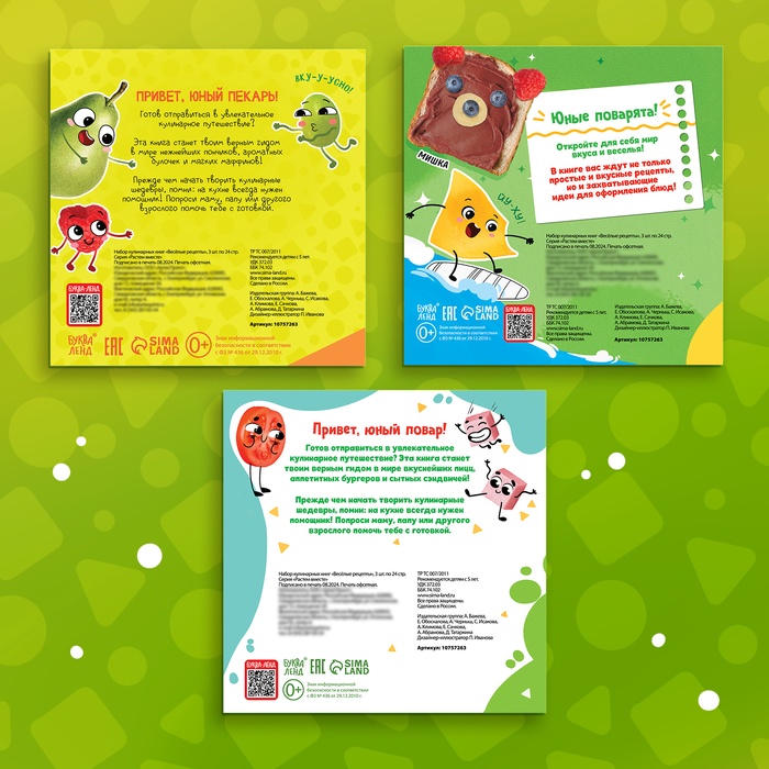 Набор подойдёт в качестве оригинального подарка на праздник или для семейного досуга. Вместе с родителями дети смогут создать простые и вкусные блюда, разделив радость от процесса. Это не просто кулинарные книги, а возможность провести время вместе и открыть для себя увлекательный мир готовки.