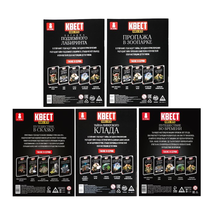 Что такое книга-квест? Это издание с определённым сюжетом, где вас ждёт множество загадок, головоломок, шифров и ребусов. Здесь вам предстоит искать сокровища или пропажу в зоопарке, отправиться в путешествие во времени и не только. Это невероятное приключение, которое поможет натренировать логику, смекалку, внимание и способность быстро решать самые сложные головоломки.