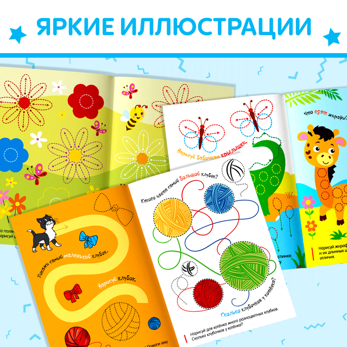 Во время занятий с книгами малыш будет обводить рисунки по пунктирной линии — потренирует моторику и подготовит руку к письму, а также познакомится с разными зверушками.