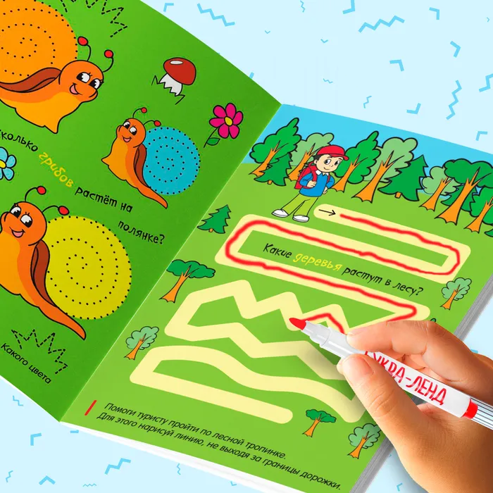 Книги с маркерами — это бесконечное удовольствие и развивающая игра в одном издании. Малыш может рисовать, обводить и выполнять увлекательные задания, а затем стереть всё написанное с помощью колпачка и начать заново. Маркер легко удаляется, и любимые задания можно выполнять снова и снова.