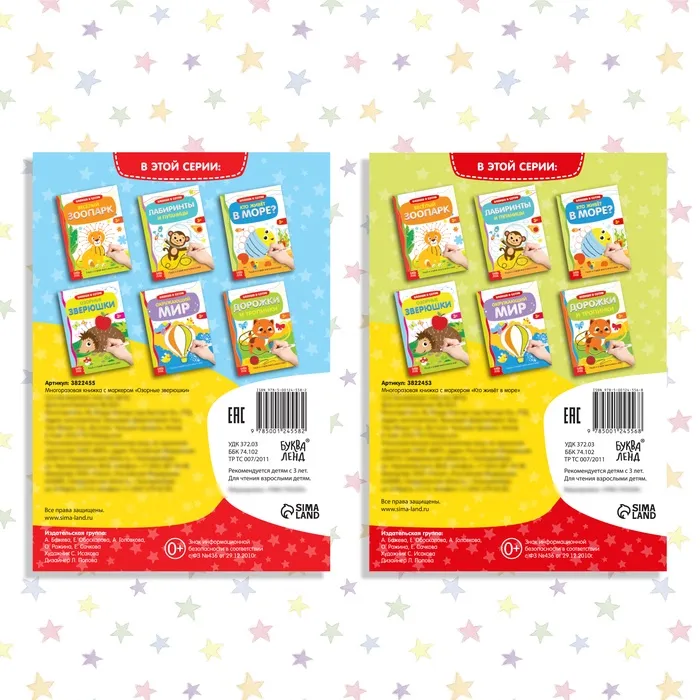 Книги с маркерами — это бесконечное удовольствие и развивающая игра в одном издании. Малыш может рисовать, обводить и выполнять увлекательные задания книжки, а затем стереть всё написанное с помощью колпачка-маркера и начать заново. Маркер легко удаляется, и любимые задания можно выполнять снова и снова.