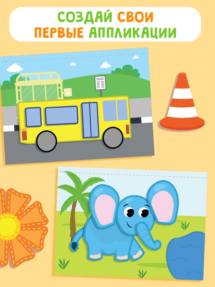 Набор аппликаций из двух книг познакомит малыша с новым видом творчества. В каждой книге по 11 красочных картинок, которые ребёнок сможет «оживить» сам! Для этого нужно выбрать вариант фона — с подсказкой или без, аккуратно вырезать детали и приклеить их на картинку. Кропотливая работа развивает мелкую моторику и усидчивость, которые важны для повседневной жизни.