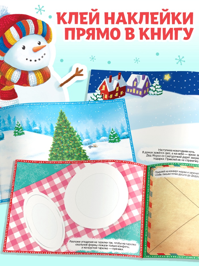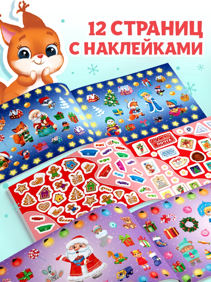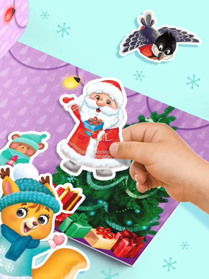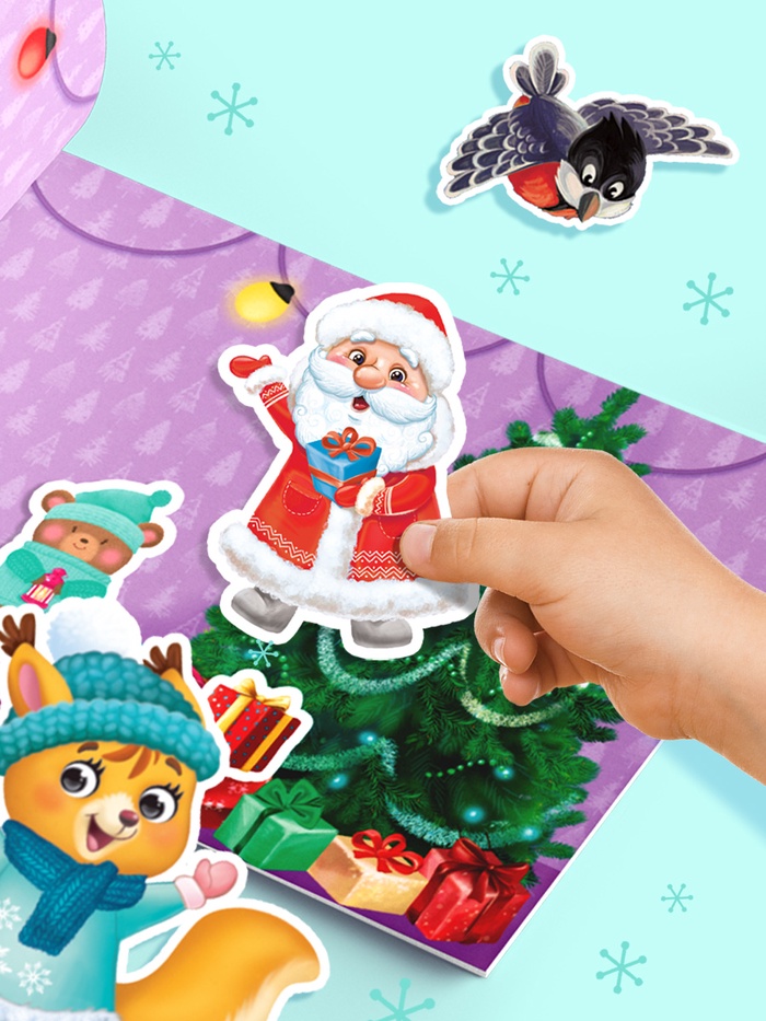 С набором новогодних наклеек малыш весело и интересно проведёт время в ожидании праздника и потренирует важные навыки.