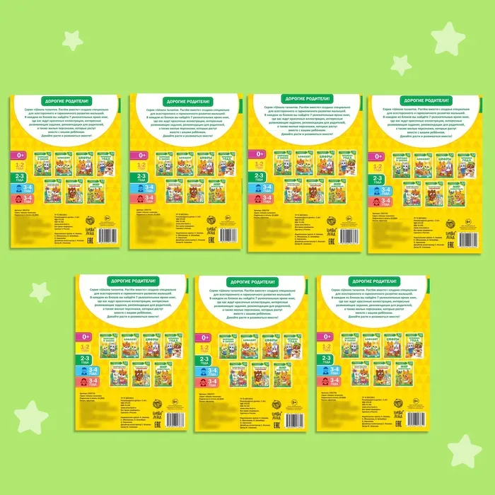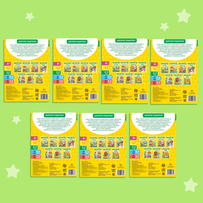 «Школа талантов. Растём вместе» — это 5 комплектов книг, созданных для системного развития малышей от самого рождения до 4 лет. Каждый блок включает в себя 7 красочных изданий, разработанных в соответствии с ФГОС ДО и с учётом психологических особенностей детей данного возраста.