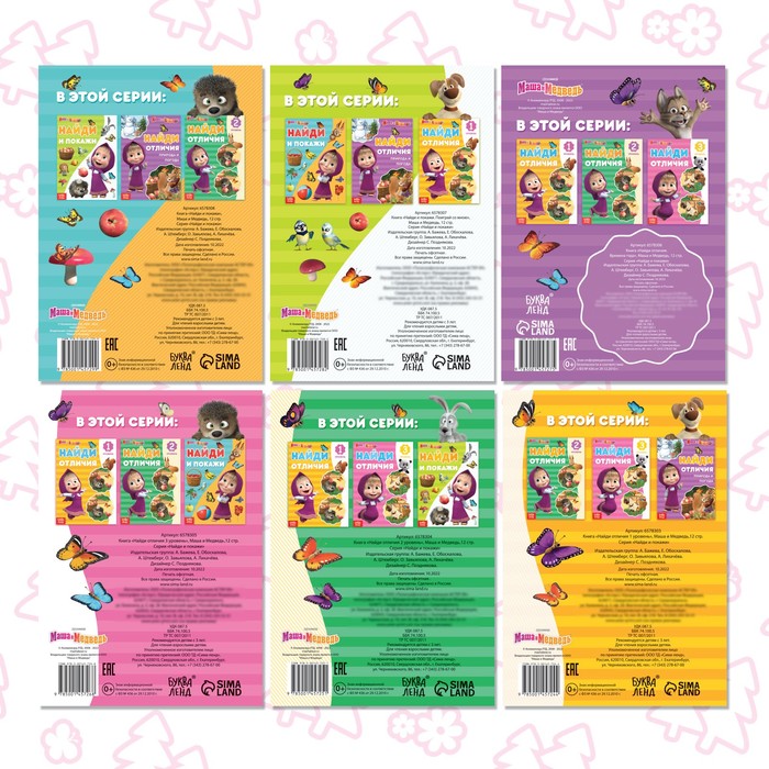 Книги «Найди отличия», 6 шт. по 12 стр., А5, Маша и Медведь — Характеристики