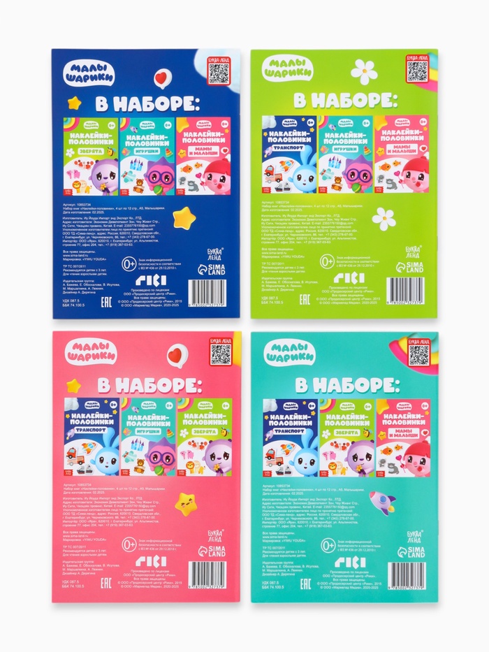 Набор из 4 книг с наклейками «Малышарики» — это увлекательный способ познакомить малышей с миром транспорта, животных, игрушек и семейных ценностей. Каждая книга формата А5 содержит 12 страниц с заданиями и яркими стикерами-половинками. Это не просто книги — это инструмент для развития моторики и логического мышления в игровой форме.