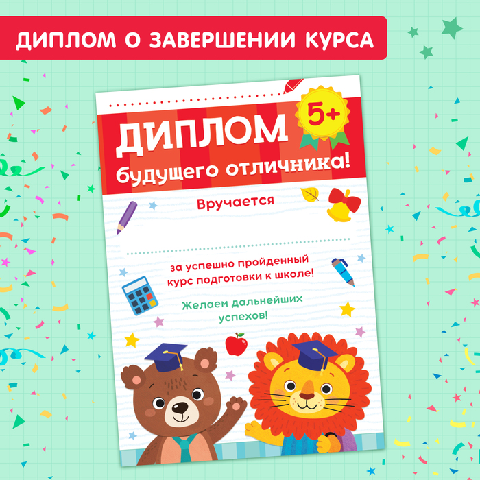 Когда малыш пройдёт весь курс, вручите ему диплом будущего отличника, который входит в комплект.