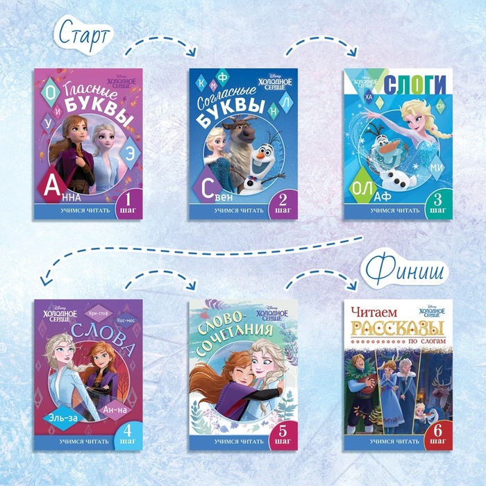 Книги обучающие «Учимся читать с Эльзой и Анной», 6 шт. по 24 стр., А5, Холодное сердце — Характеристики
