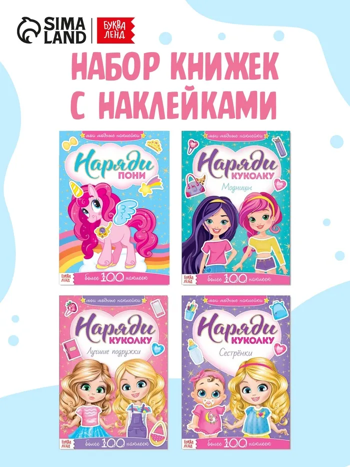 В каждой книге малышку ждёт более 100 цветных наклеек с одеждой и аксессуарами для кукол.