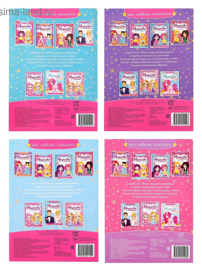 Книги с наклейкам «Наряди куколку. Для малышей», набор 4 шт. по 12 стр. — Характеристики