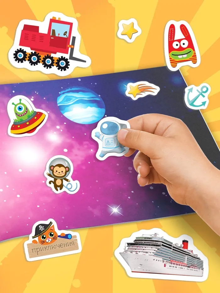 С «Для мальчиков» малыш отправится в удивительное путешествие по страницам мира техники и далёких галактик, где каждая наклейка — это новый шаг к открытию окружающего мира.