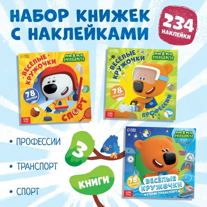Книги с наклейками - кружочками «Изучаем мир», набор 3 шт. по 12 стр., Ми-Ми-Мишки — Характеристики