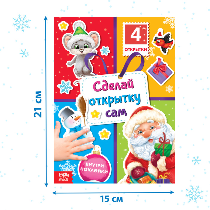 - Набор включает две книги с заданиями и разноцветными наклейками для оформления открыток.