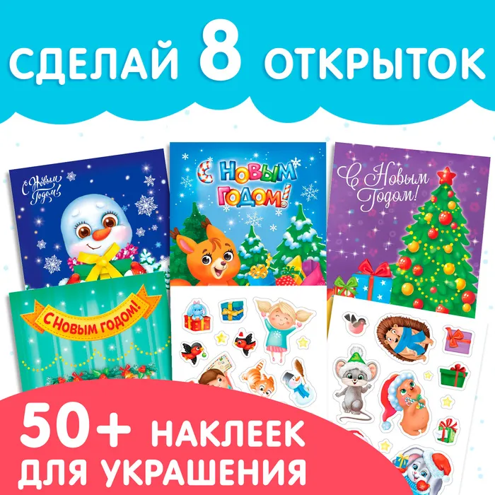 Набор книг с наклейками «Новогодние открытки» поможет детям от 3 лет создать 8 уникальных праздничных открыток. Две книжки предлагают увлекательный процесс творчества, который погрузит ребёнка в атмосферу волшебства Нового года.