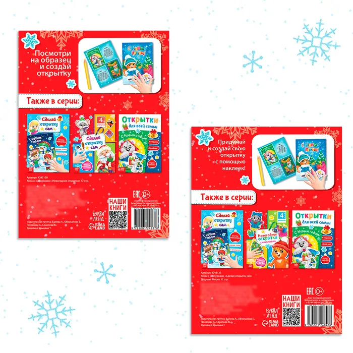 - Каждая книга содержит шаблоны и идеи для создания ярких новогодних открыток.
