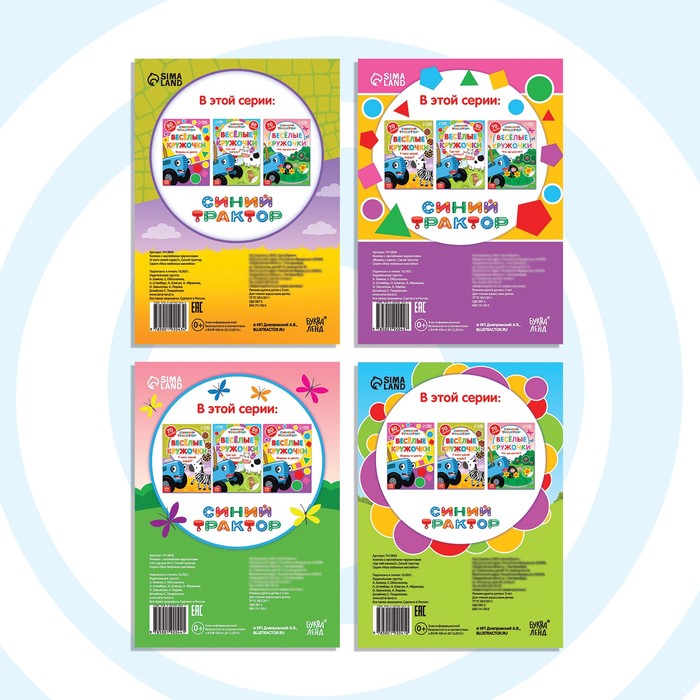 Книги с наклейками «Весёлые кружочки», набор 4 шт. по 16 стр., А5, Синий трактор — Характеристики