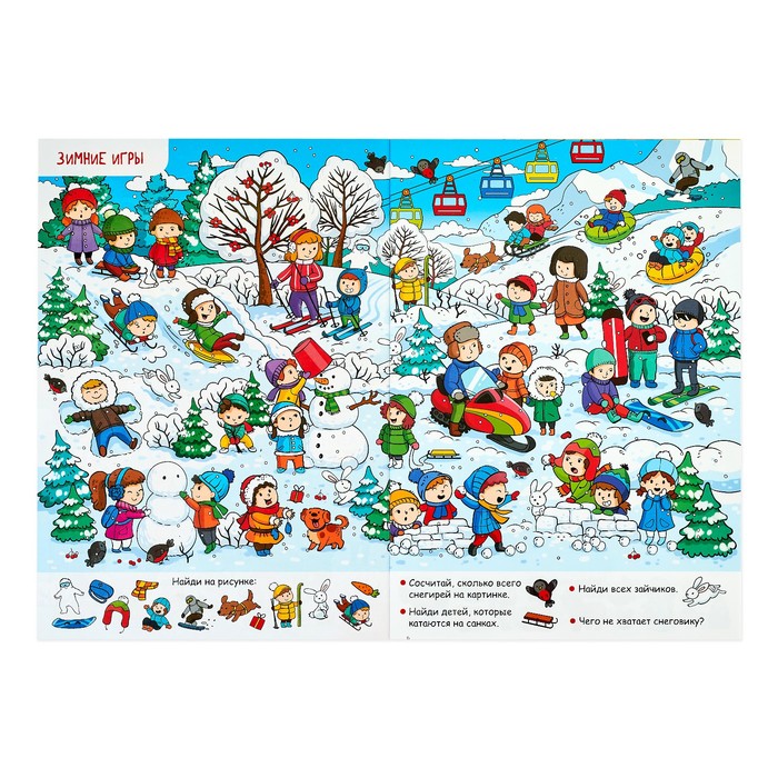 - В книжках простые задания на поиск предметов, более сложные головоломки или сочетания разных типов заданий.