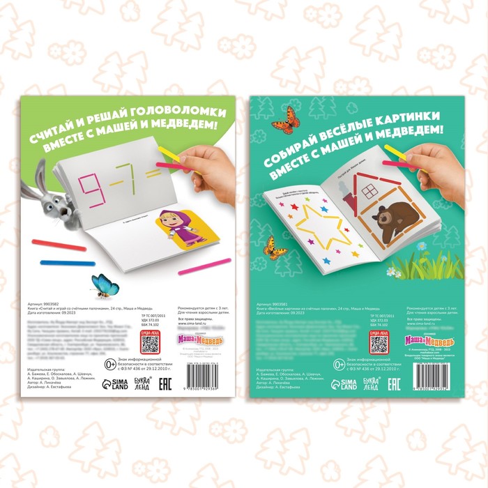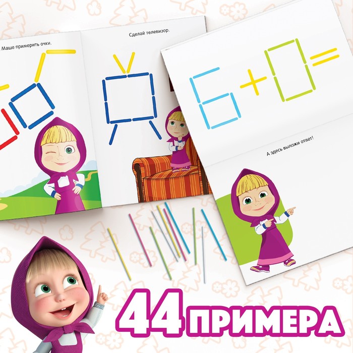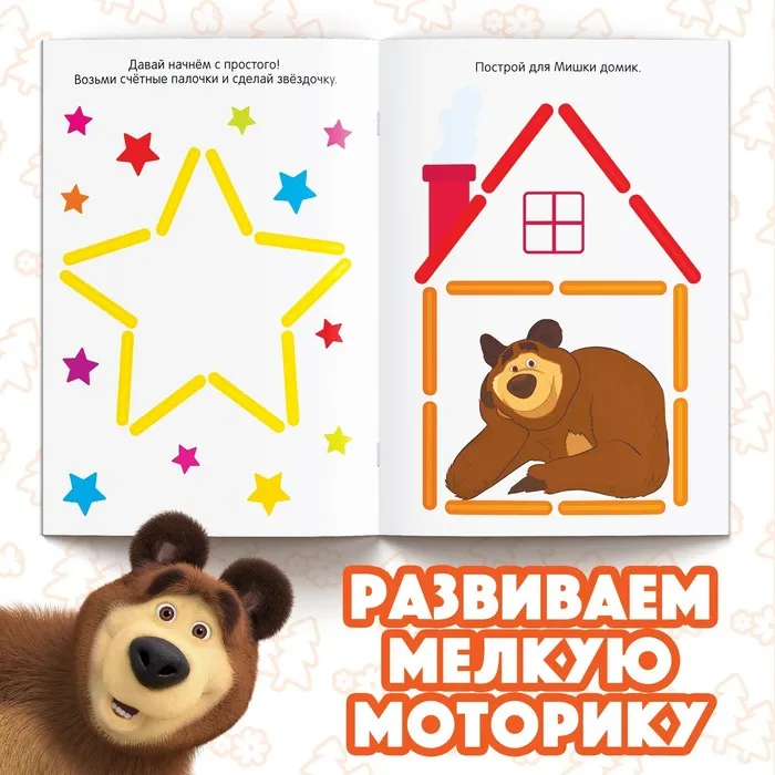 Книги «Учимся и играем», набор 2 шт. по 24 стр., 200 палочек, Маша и Медведь — Характеристики