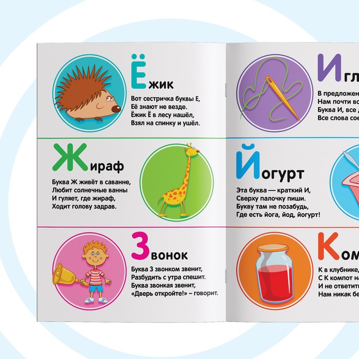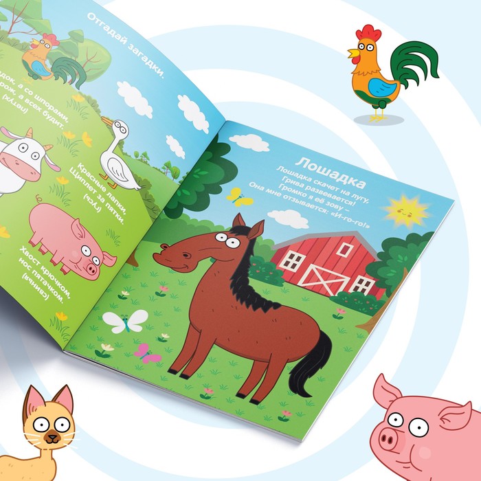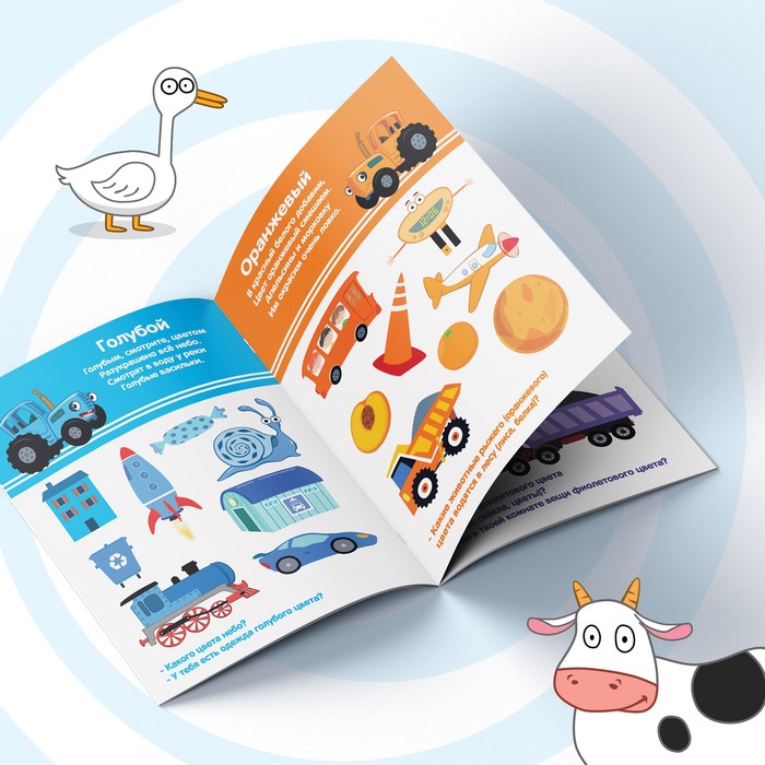 Внутри вы найдёте задания, которые помогут ребёнку в игровой форме выучить буквы, цифры, цвета и познакомиться с домашними животными. Также в книге есть забавные иллюстрации с любимыми героями мультфильма «Синий трактор».