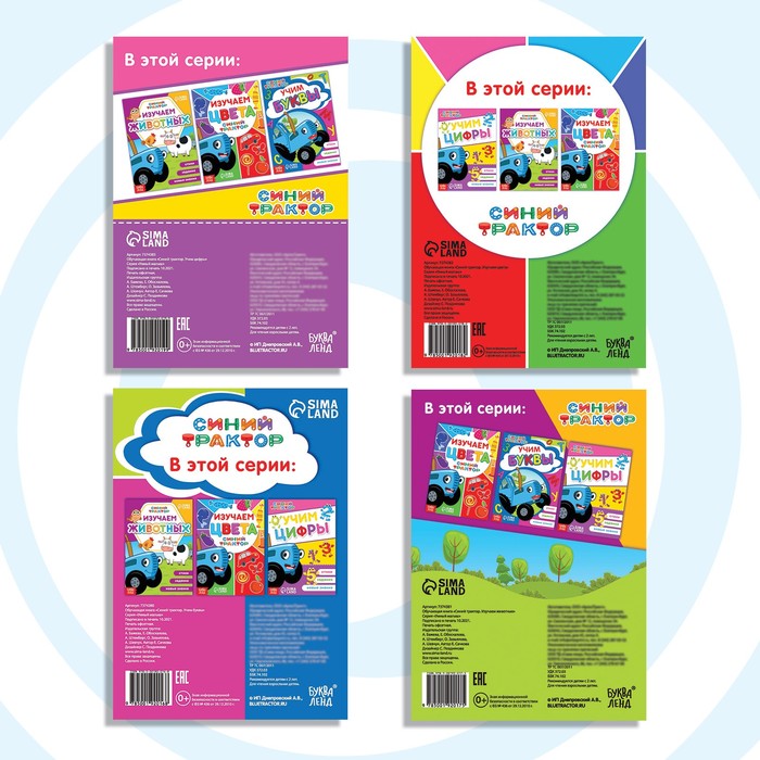 Набор обучающих книг «Синий трактор» представлен 4 изданиями: