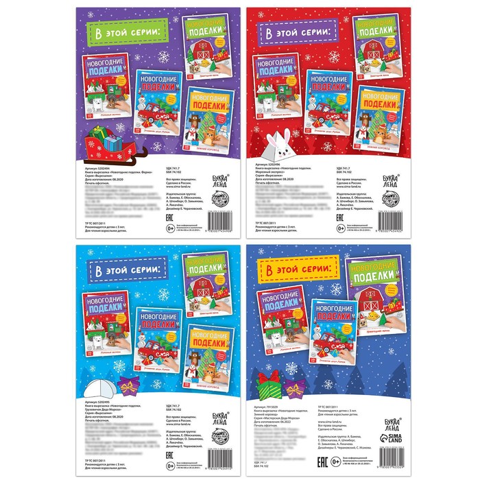 Книги - вырезалки «Новогодние поделки», набор 4 шт. по 20 стр., 44 поделки — Характеристики