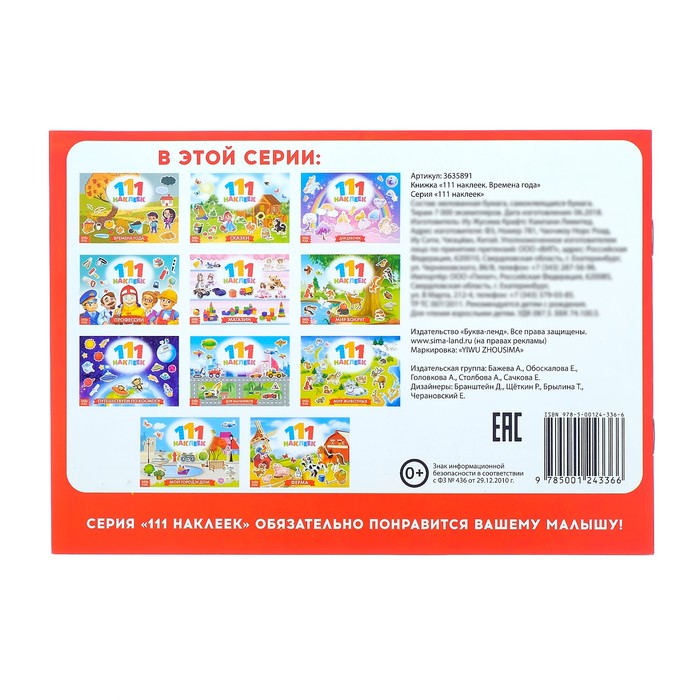 Книжка «111 наклеек. Времена года», 12 стр. — Характеристики
