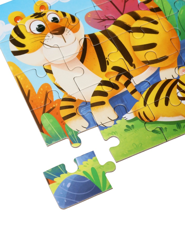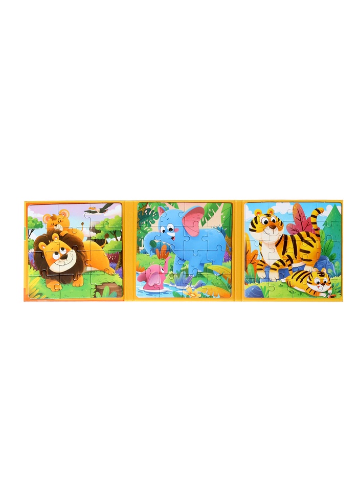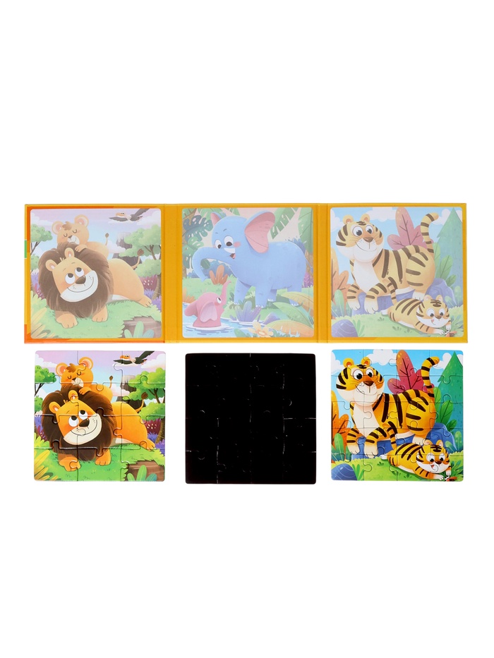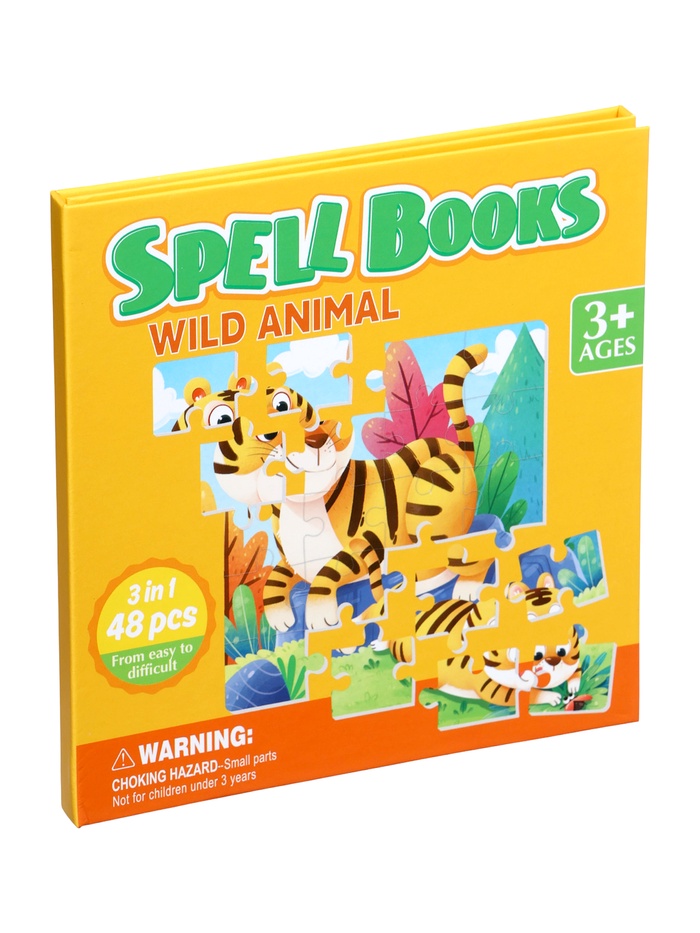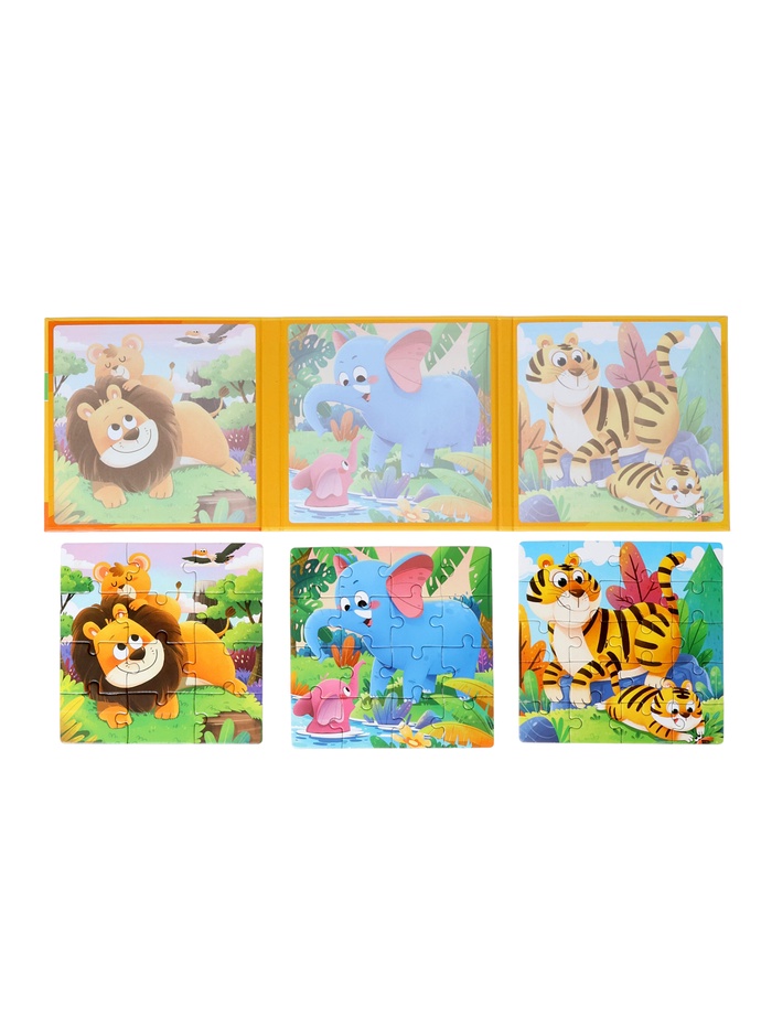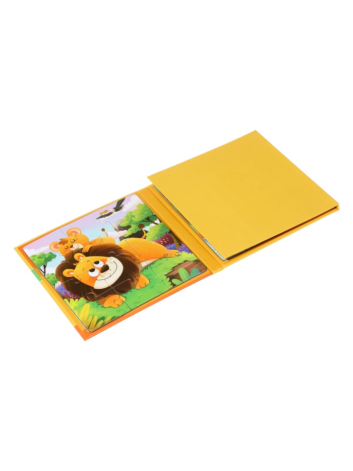 Книжка-пазл «Животные» — это деревянная раскладушка, внутри которой спрятаны 48 деталей классического пазла в рамке. Открывая её, как книгу, ребёнок попадает в увлекательный зоопарк: на каждой «странице» — фрагменты, из которых складывается целая картина с обитателями разных уголков планеты. Игра подходит детям от 3 лет и сочетает удобство хранения с глубиной развивающего процесса.