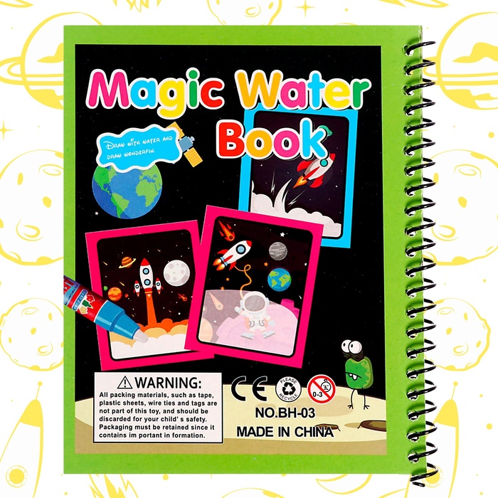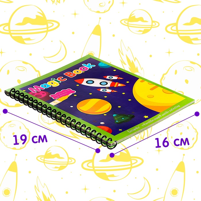 Книжка для рисования водой «Космос» удивит малыша и его родителей! Используя волшебный маркер, ребёнок сможет несколько раз раскрашивать книжку. При этом руки и одежда юного художника останутся чистыми.