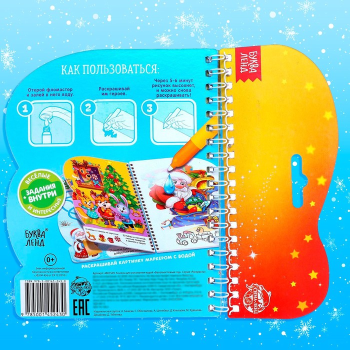 Книжка для рисования водой «Веселый новый год», с водным маркером, 10 стр. — Характеристики