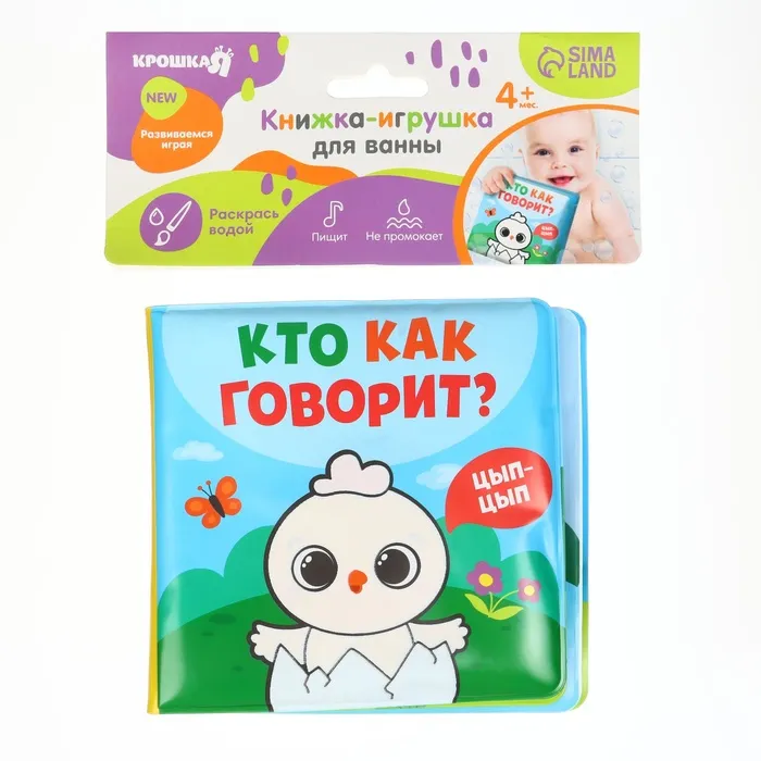 Книжка - игрушка для ванны Крошка Я «Кто как говорит», водная раскраска, от 4 мес. — Характеристики